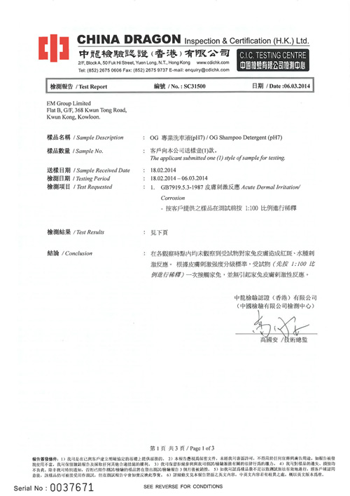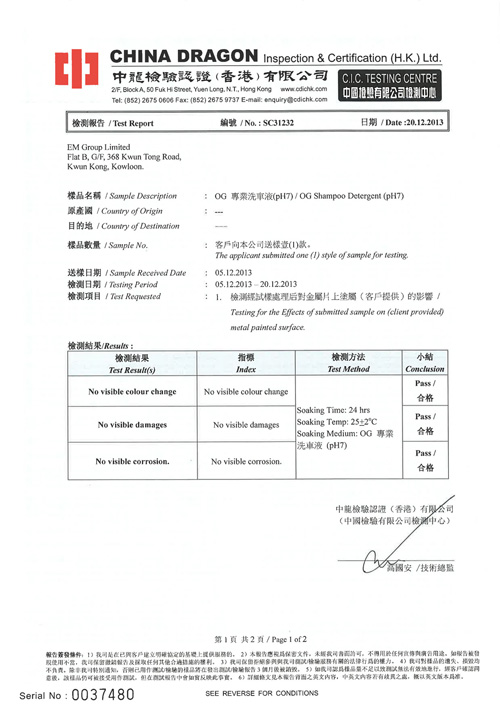 2、三協天驊洗車液重要認證證書: