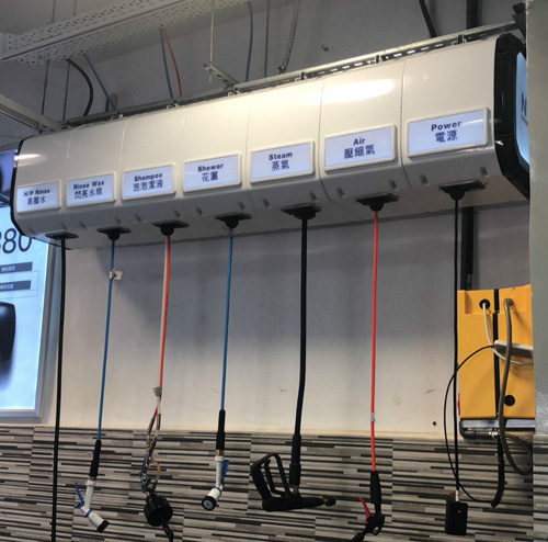 2、此時稀釋后的濃縮洗車液(濃縮閃亮水蠟)可通過我公司中央智能液體分配機再次配比使用,分配機工作頻率調至160Hz(即1:80配比率),配比后的洗車液(閃亮水蠟)通過管道直接輸送到工位終端使用。