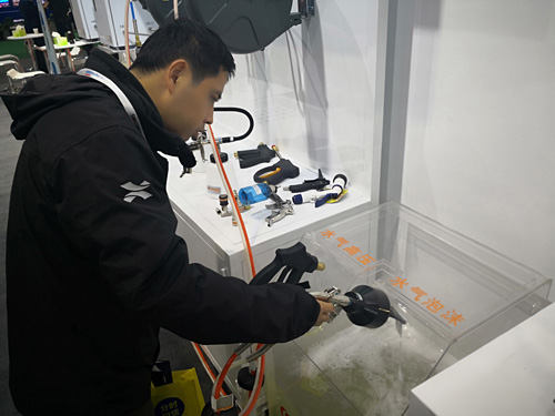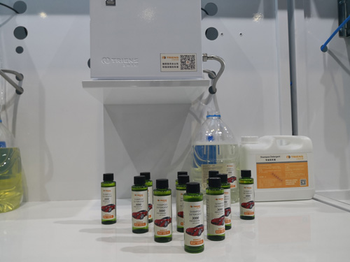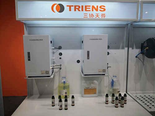 本次展會,三協(xié)天驊還在洗美產(chǎn)品展示區(qū) 展出了新鮮出爐的重磅新品——1:3000超濃縮專業(yè)洗車液和超濃縮閃亮水蠟以及中央供液系統(tǒng)(中央傳輸泡沫、水蠟), 于國內(nèi)水平的超濃縮洗車液和閃亮水蠟一經(jīng)亮相,立刻引起了參展國內(nèi)外客戶的極大興趣,紛紛圍繞在洗美展示區(qū)進(jìn)行咨詢了解并親自操作體驗此中央供液系統(tǒng)的獨特魅力。