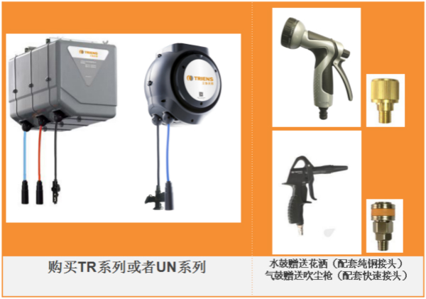 促銷一:購買三協(xié)天驊TR系列或者UN系列,水鼓贈送花灑(配套純銅接頭)、氣鼓贈送吹塵槍(配套快速接頭)